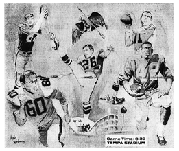 The game’s biggest draw was University of Florida product and 1966 Heisman Trophy winner Steve Spurrier. The 49ers drafted him in the first round of the 1967 entry draft, but Spurrier spent the majority of his time as the punter and second-string quarterback behind John Brodie. The game in Tampa would mark Spurrier’s first time playing in Florida as a pro. Spurrier would once again serve as Brodie’s backup, but split equal time throughout the contest.